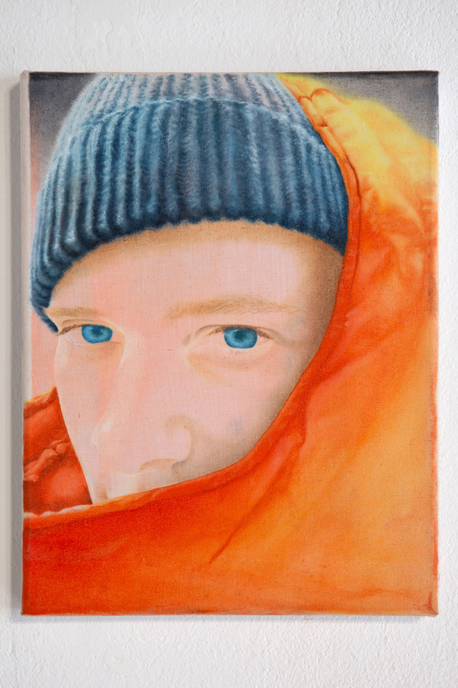 gazing into that garage (Lukas), 26 x 20 cm, oil, laquer on cotton, 2019