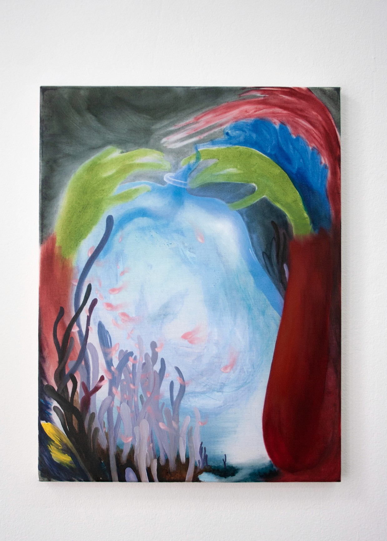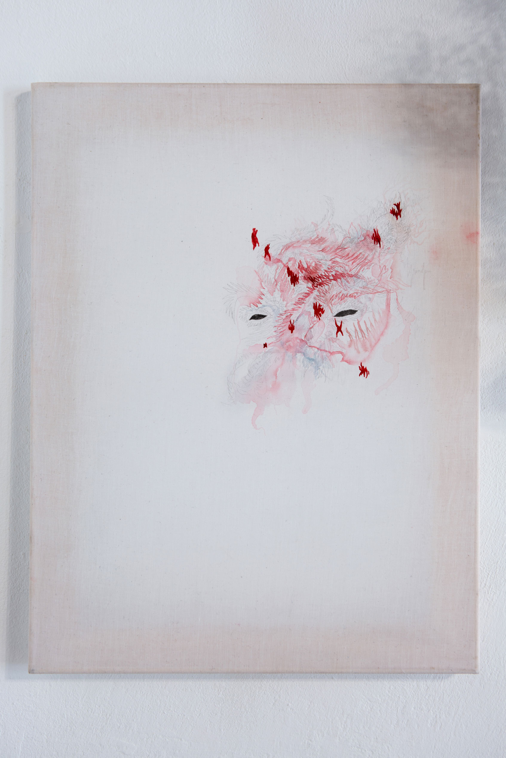 heartache constructed of gills, 51 x 39 cm, watercolour, pencil, oil on cotton, 2020