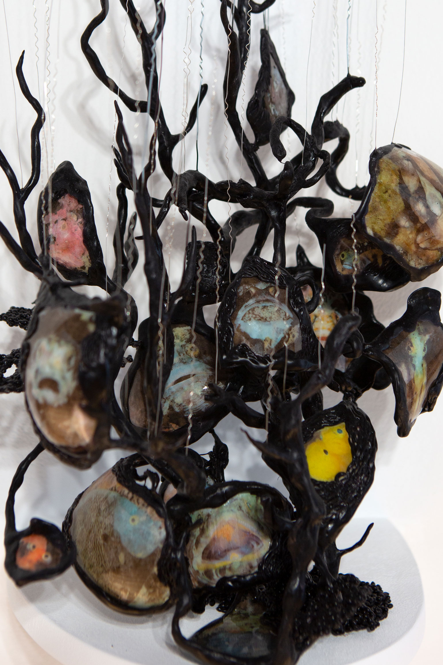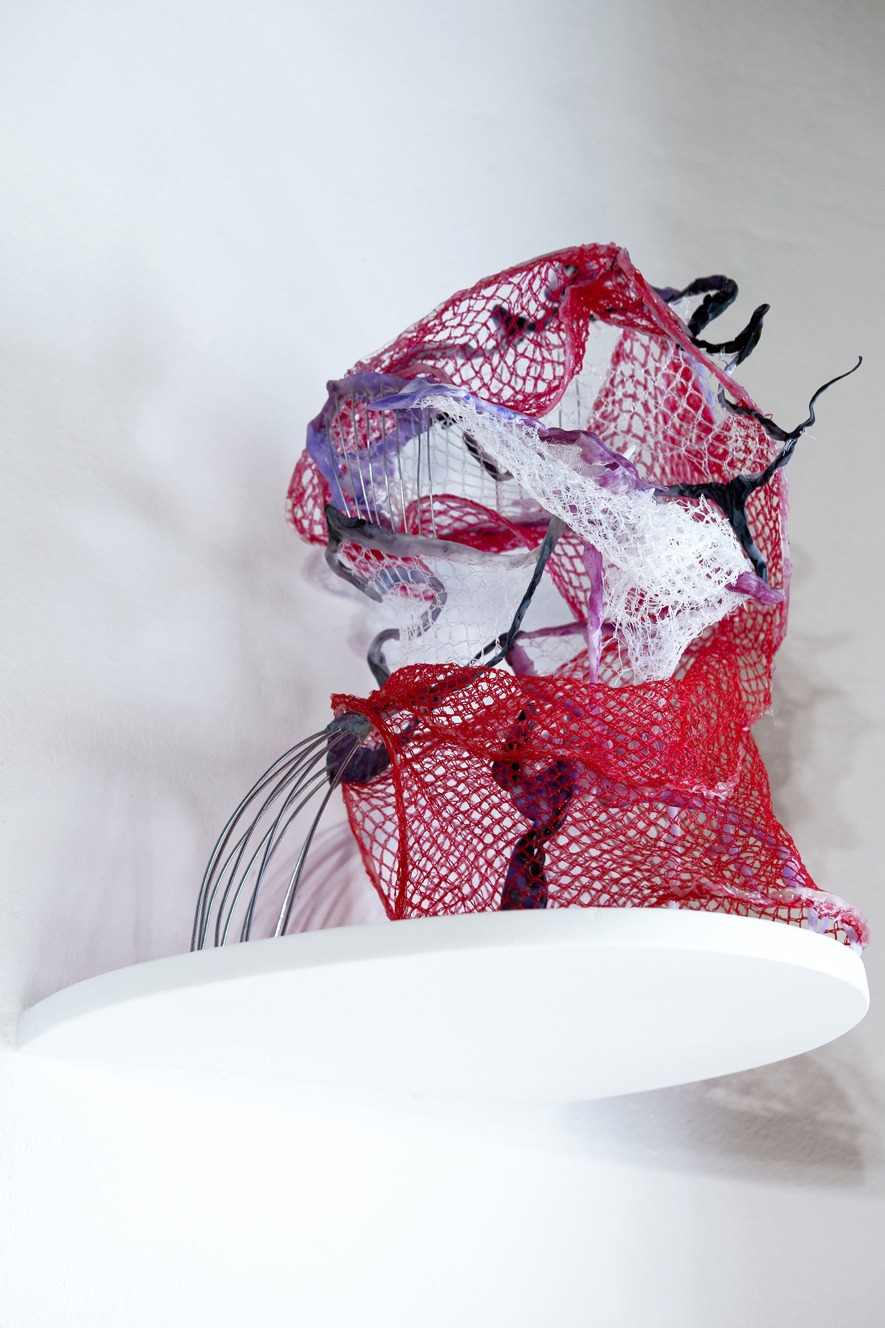 trapped, 36 x 30 x 30 cm, plastic net, wire, polymorph, glue, 2020
