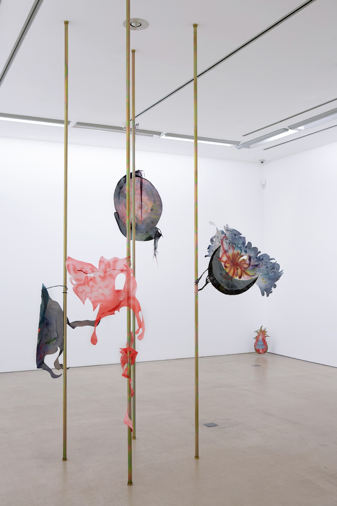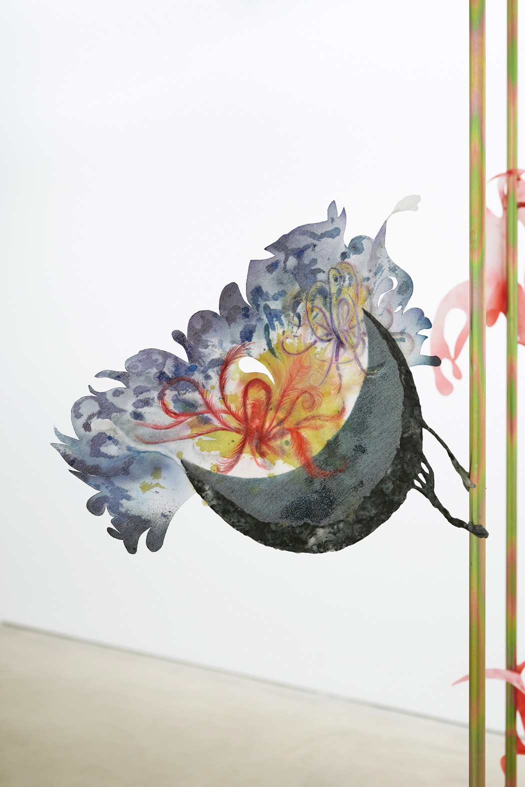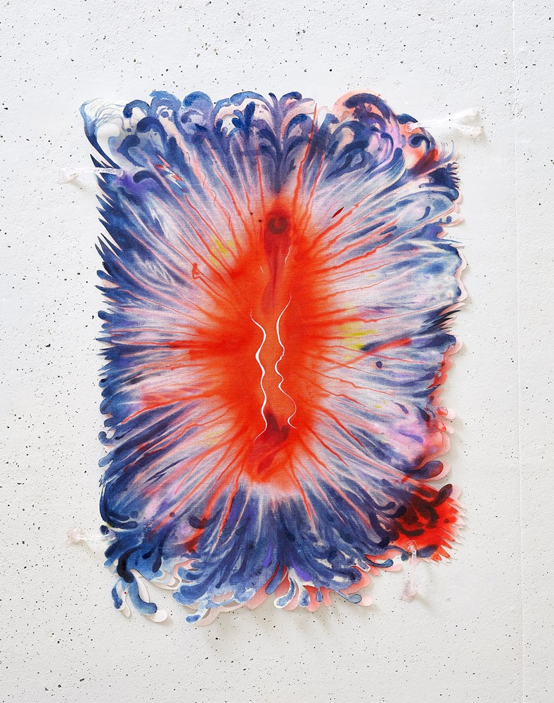 Tentacular Disco, ink, acrylic, oil, nailpolish, polymorph, woven paper, 68 x 51 cm, 2019