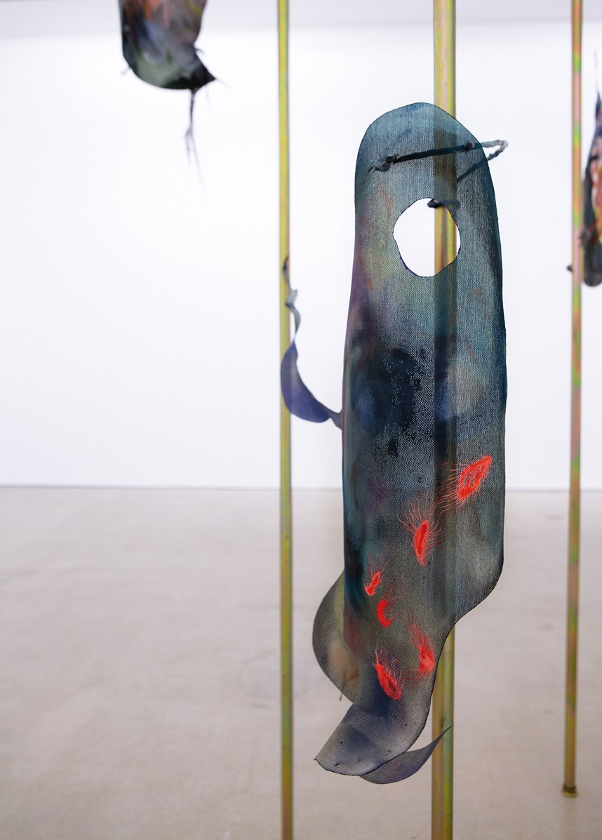 Untitled, ink, acrylic, oil, nail polish, polymporph, woven paper, magnets, 70 x 42 cm, 2019