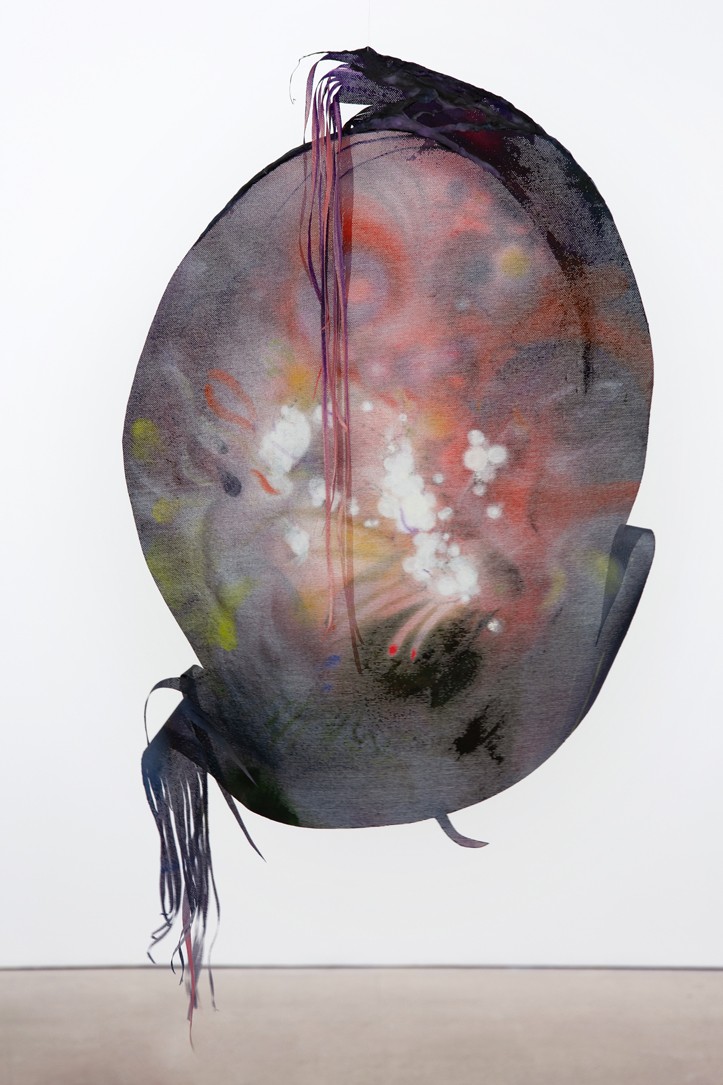 untitled (electric clam), ink, oil, woven paper, polymorph, nail polish, 94 x 65 cm, 2019