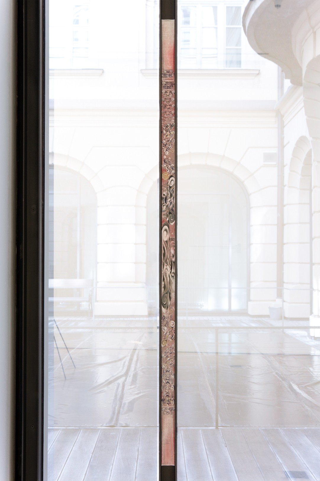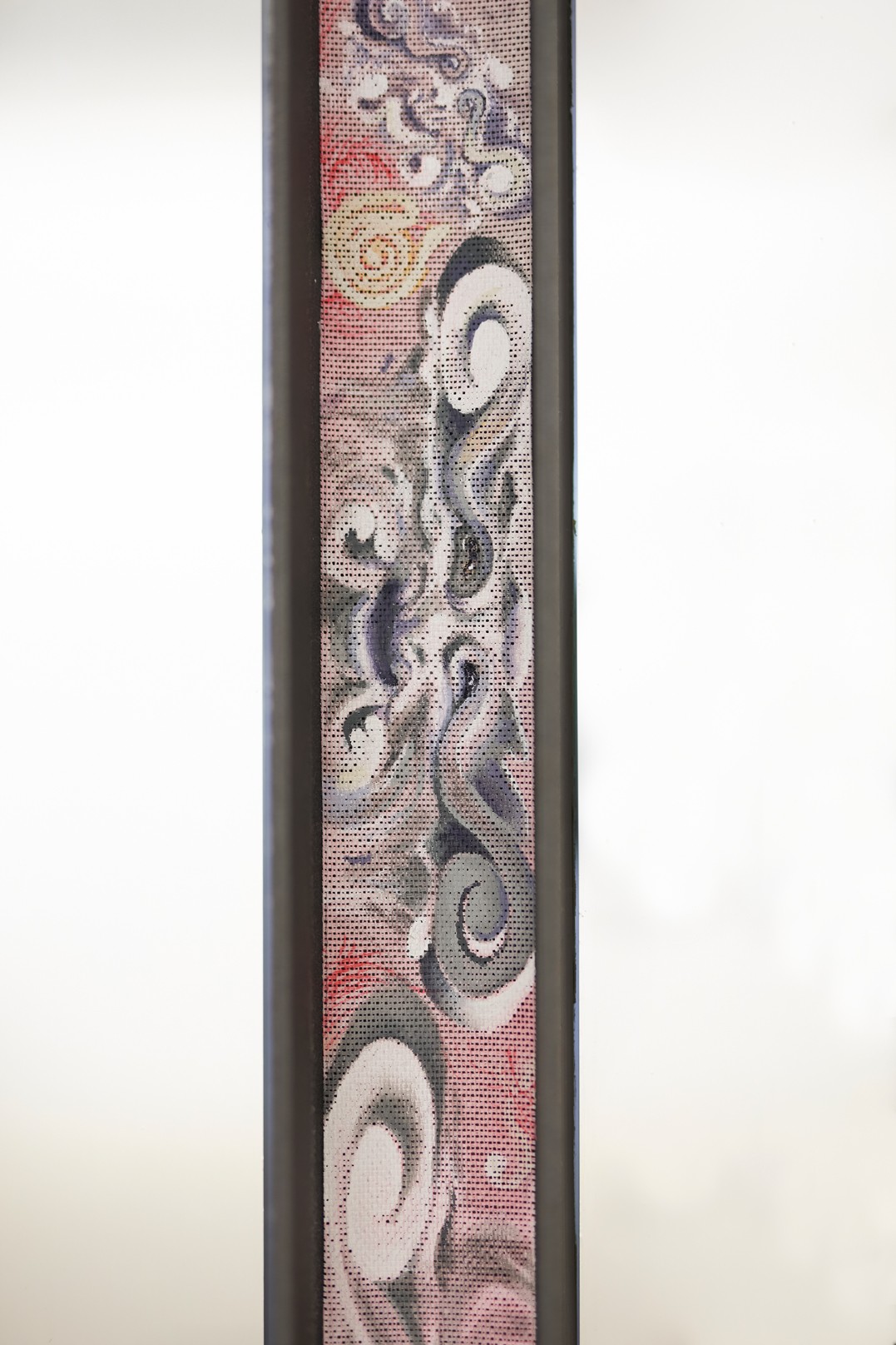 Medusa Effect, ink, acrylic, oil, woven paper, 125 x 4 cm, 2019