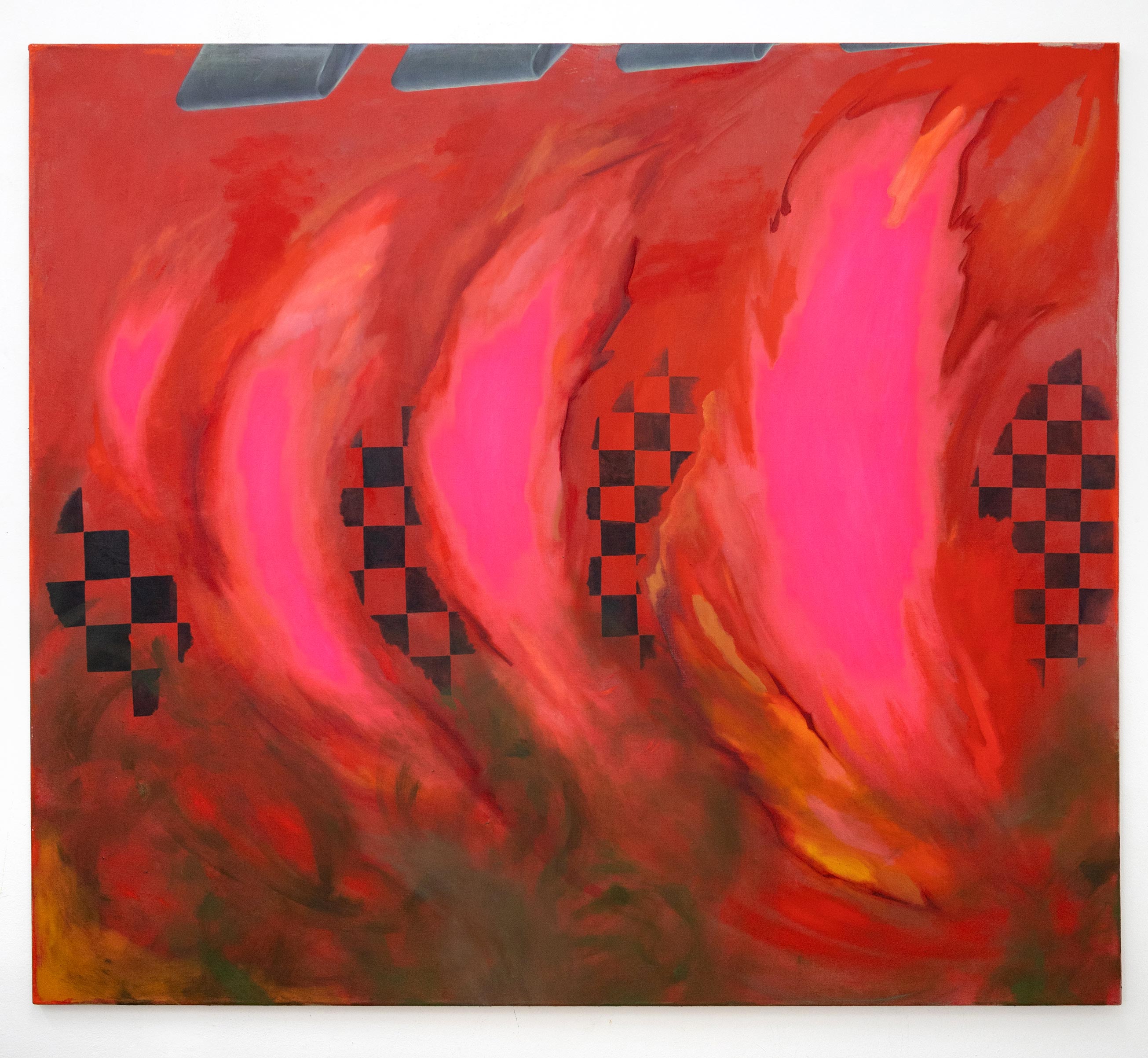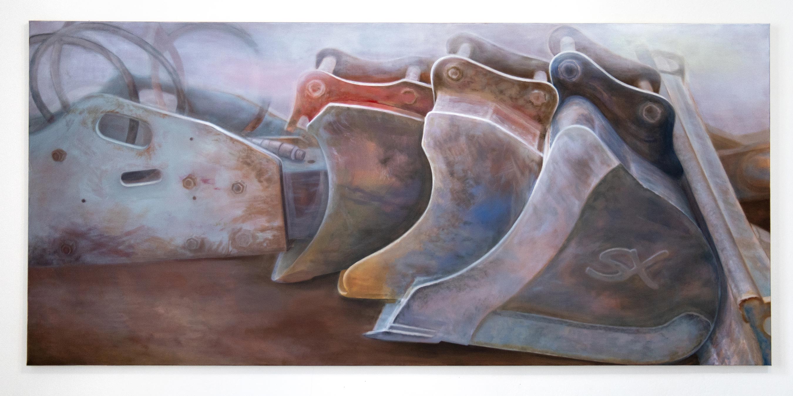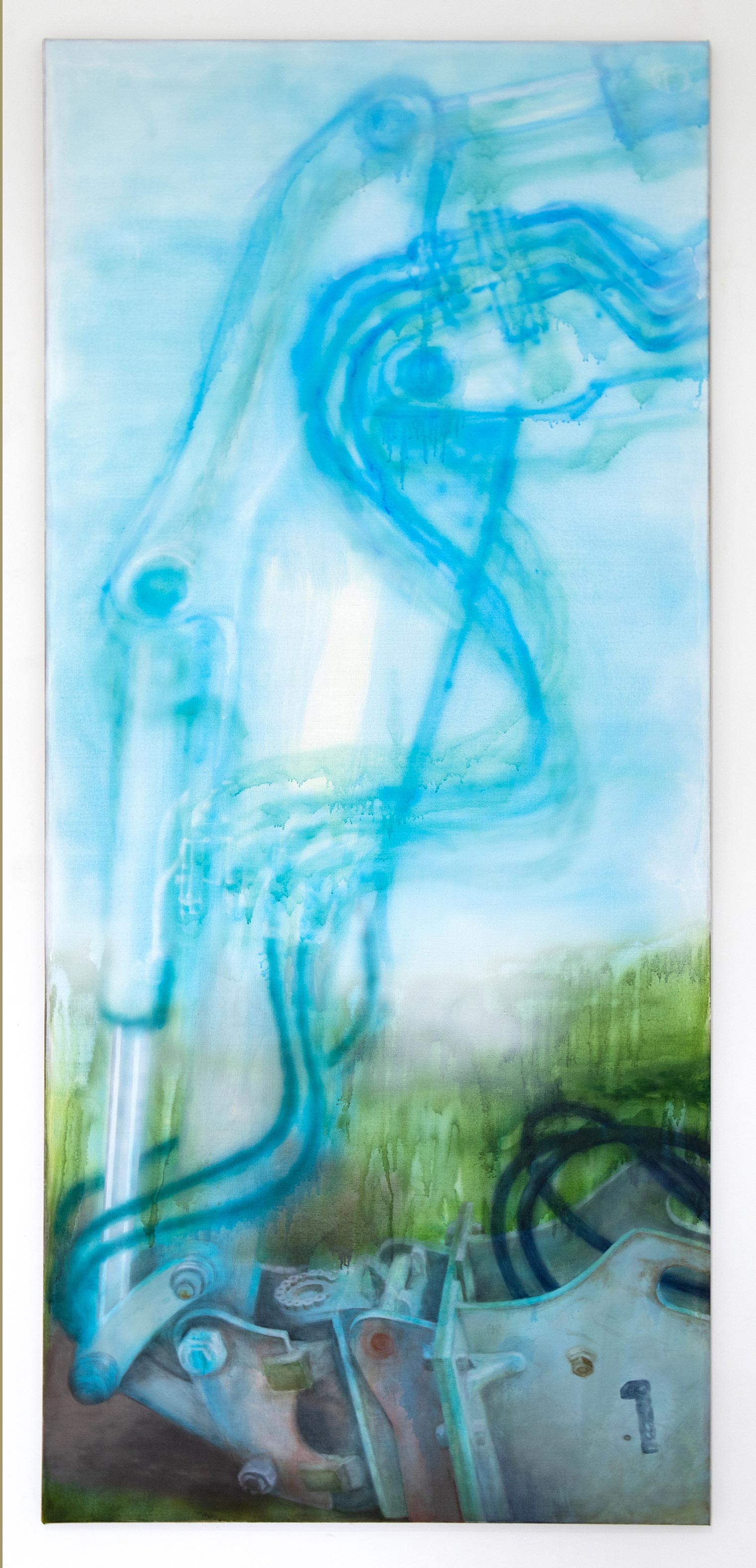 Tinte, Öl, Acryl auf Leinen, Stahl, Gefundene Objekte, 260 x 98 cm,