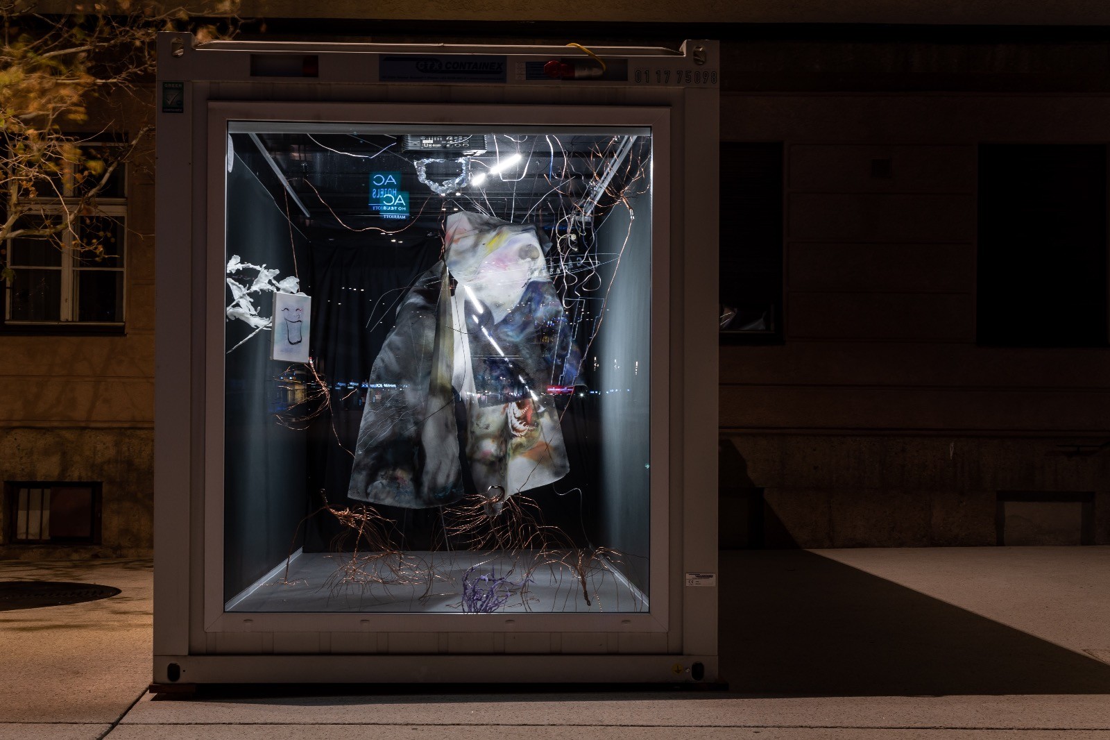 In Sophia Mairer’s painting, measuring 30 by 21 centimetres, depicted on the PREMIERENTAGE poster, the tentacles emerge gleaming and blackly shining into visibility and set the very trap of human perception for us which we walk into with reliable regularity and averageness. When we see clouds, streaks, blots of ink, roots, or tentacles, we automatically see forms, figures, familiar things, recognised things. Most preferably a reflection of ourselves. Something human. Sophia Mairer’s tentacles make us believe we see a face, a grimace, a smile. Is it the emancipatory laught of Medusa, as Hélène Cixous saw it, or the strained smile of the service age, the grin of the entertainer artist, or a snort gone out of control? We, the viewers, are familiar with the rules of pictures and know that what is fixed here for eternity is a moment with a before and an after, that it is a captured moment of visibility. Soon, so our wont illusion goes, the tentacles will go down again and, the illusion tells us again, the face suddenly forming will disappear. All the more, while looking, we cling to the familiarity and the recognition of the form. To meet insecurities and disturbances with fixed interpretations, designations and norms is a well-known strategy. »All the thousand names are too big and too small; all the stories are too big and too small,« Donna Haraway writes and advises us to stay unsettled, to remain disturbed, to bear ambivalences, streaks, ambiguities, insecurities, the unfamiliar.3 The inability of the human understanding to create a meaningful connection between all things, as diagnosed by Lovecraft, thus, if only the human being at last would cease desperately trying all the time, perhaps indeed could lead to unknown alliances, unforeseeable images and new stories.